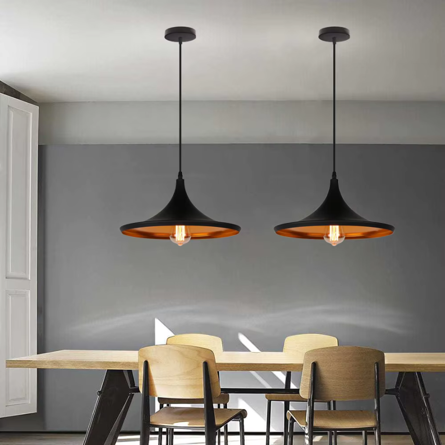 Donnez une note de personnalité à votre intérieur grâce à cette suspension luminaire industrielle, qui s’inspire du style Beat renommé. Ce design de plafonnier noir séduit par ses lignes épurées et son apparence contemporaine, agrémentée de finitions métalliques raffinées. Parfait pour une salle à manger, un salon ou une cuisine, ce luminaire émet une lumière orientée et chaleureuse, idéale pour instaurer une atmosphère chaleureuse dans votre espace.